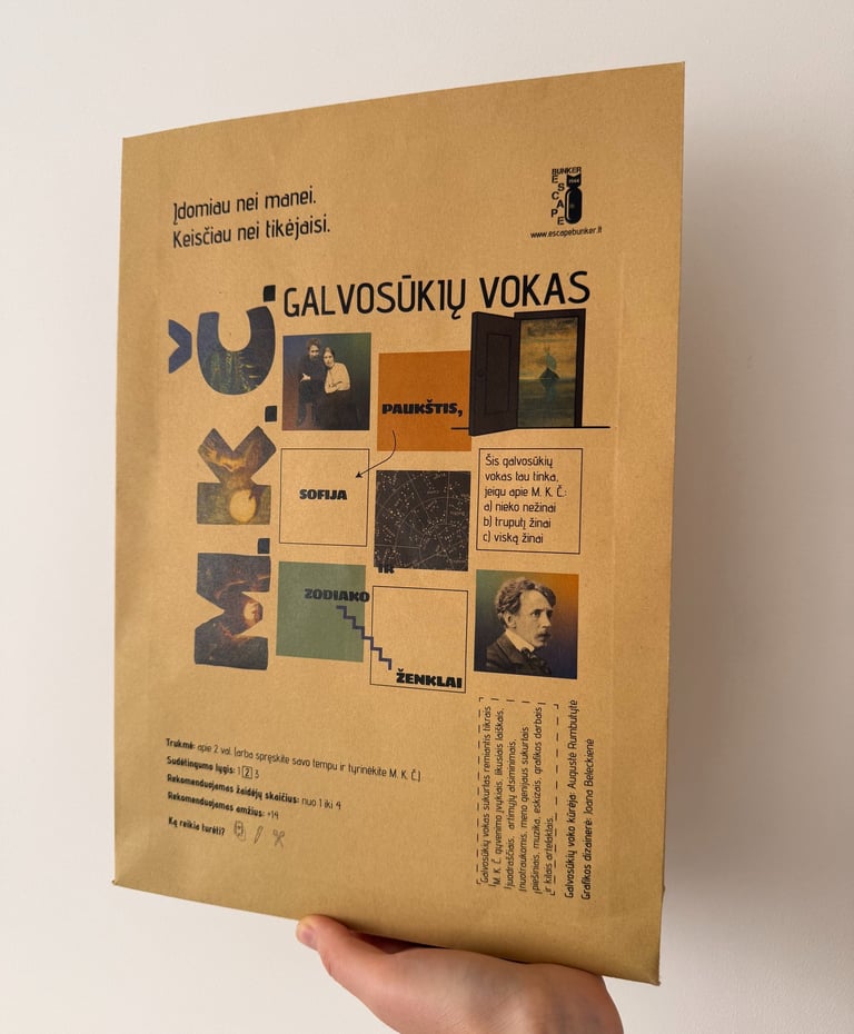 Šis galvosūkių vokas tinka tau, jeigu apie M. K. Č.: